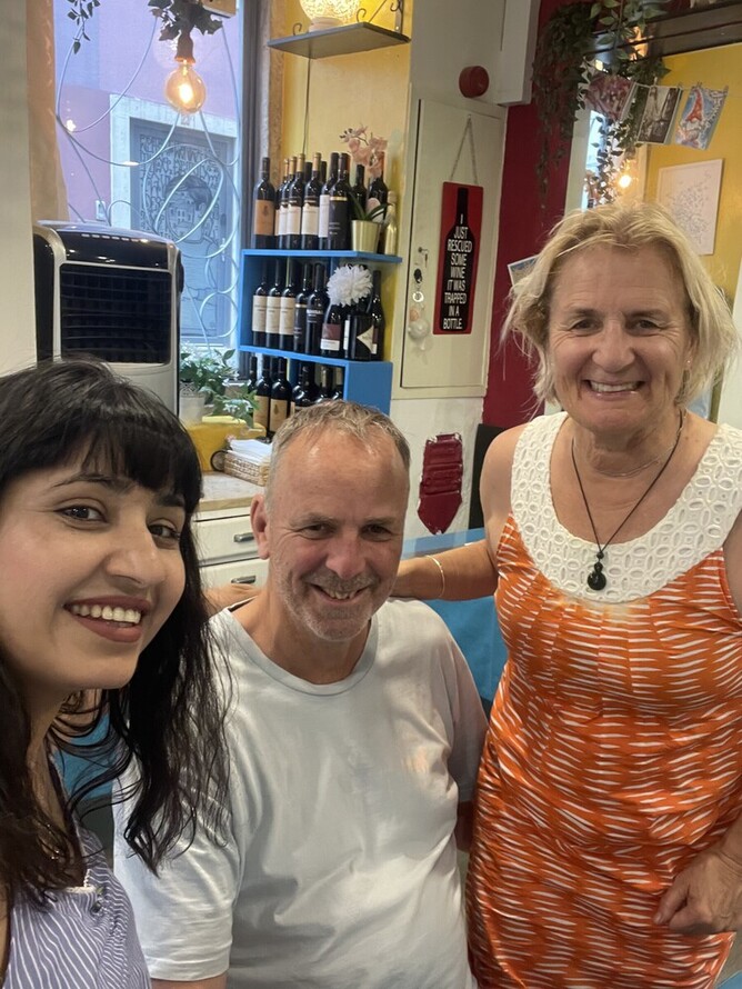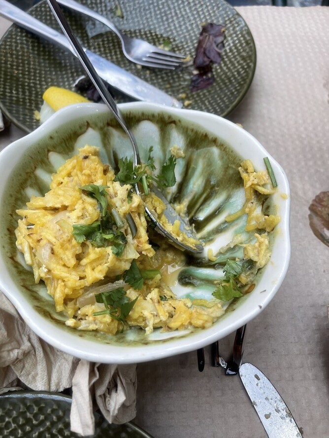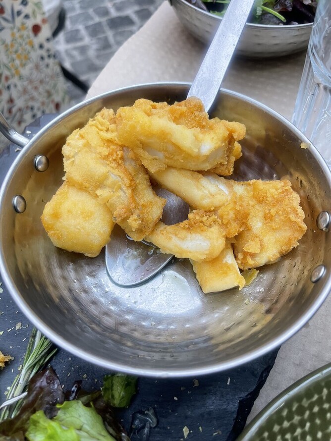 The meal was average I thought. We went traditional - sardines and octopus and rice. Bill liked it more than me. I left a lot behind. The waiter asked if we wanted a doggy bag. I didn't say it, and thought you can give it to any dog!