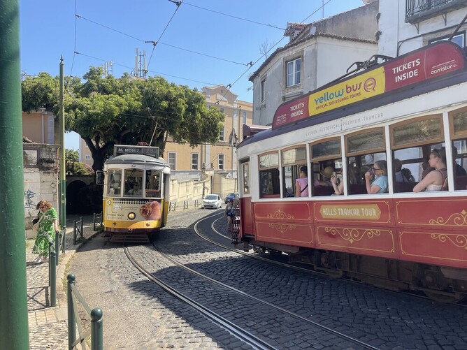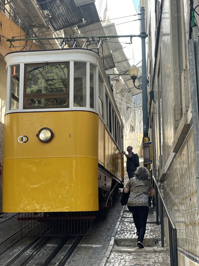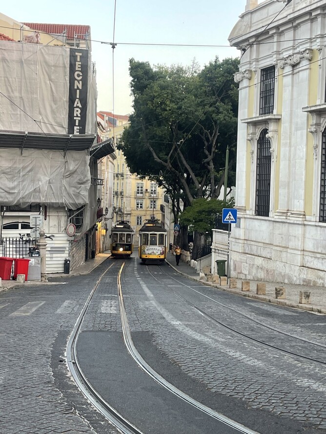 The oldest working tram is Tram 28, which operates through historic districts like Alfama, Baixa, and Chiado, and is a very touristic ride. So we went on that for an hour, early in the morning to avoid the queues for it. And saw pretty much what we saw on our bike ride, but more quickly.