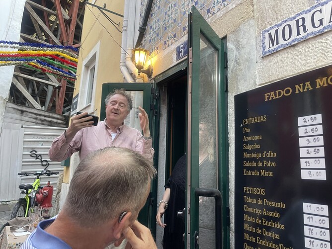 On one walk we caught a fado. "Fado, meaning "fate" in Portuguese, is a traditional Portuguese musical genre that emerged in the working-class neighborhoods of Lisbon in the early 19th century. It evolved from spontaneous singing about daily life, often performed in taverns, brothels, and other informal settings. Initially, it was a voice for the marginalized, expressing the sorrows, joys, and struggles of sailors, traders, and other working-class individuals. Over time, fado gained broader popularity and evolved, eventually becoming a recognized national and international cultural treasure."