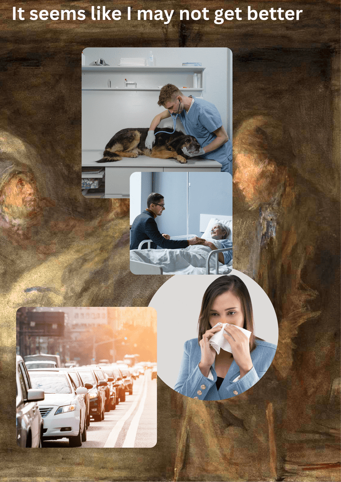 Sometimes on these travels we have a work day. Today was it. Since I have been diagnosed as having ADHD I have been collaging a bit. I use Canva. Each collage takes at most 5 minutes. Today I collage my walking. We have been walking a lot and I have developed a right leg not working as well as the other one. A bit of a foot slap. Also I have a sniffle and a cough. I collage the worst it is and then the miracle that it is when I am healed . Here is what I spent some of the morning doing while Bill worked .