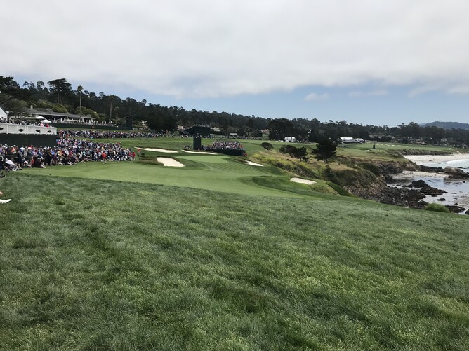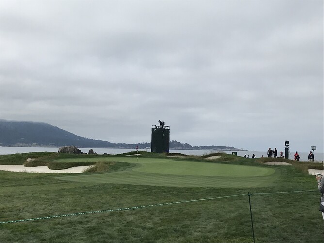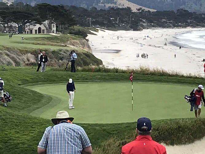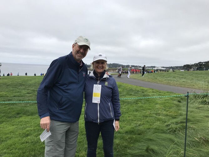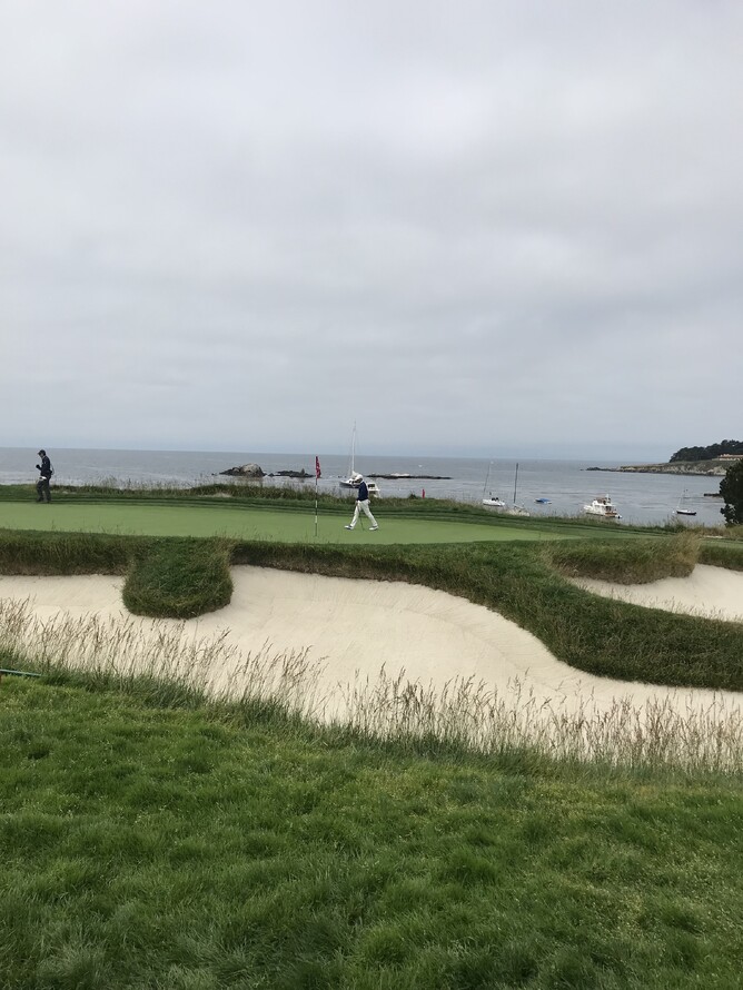 Bill worked out, and thought we had walked 36 holes. I was happy with that figure and I have very sore feet. Pebble Beach is very scenic from every hole, it was 14 degrees Celsius, you had to keep moving to keep warm and I loved watching experts play golf.