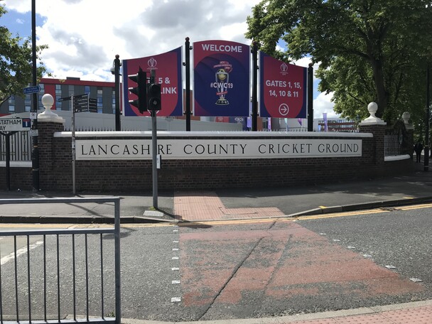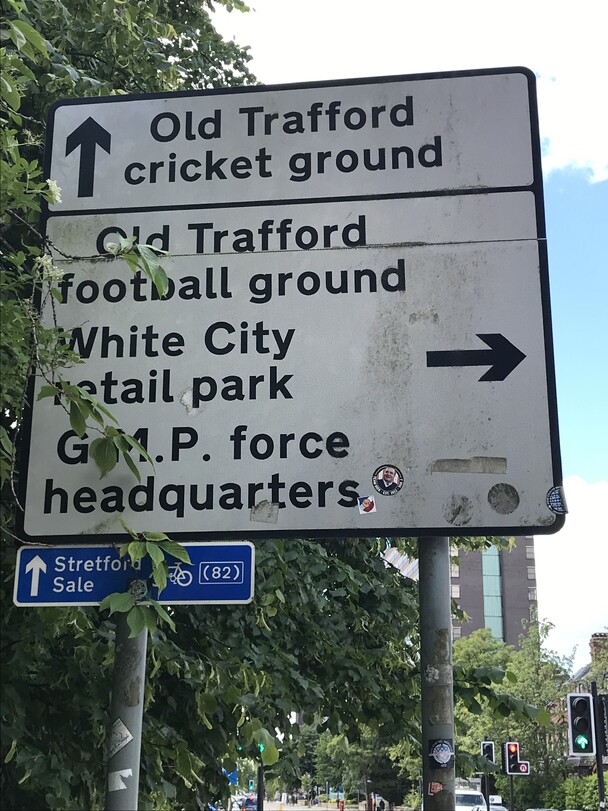 Walked to pick up tickets from Old Trafford Cricket Ground.