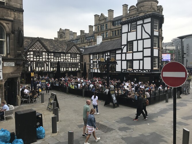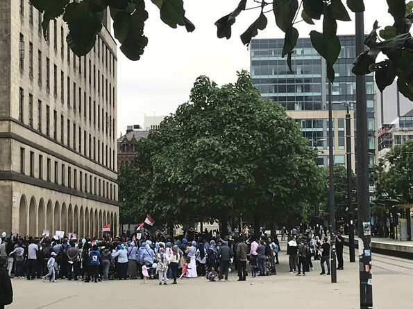 It was Manchester Day. I got a photo of Sudanese protesting (peacefully) together on Manchester Day. We also dropped in at the Comedy Club after seeing Diego Maradona movie. We will look for more Comedy Clubs. It was funny. We'll do some more of those.