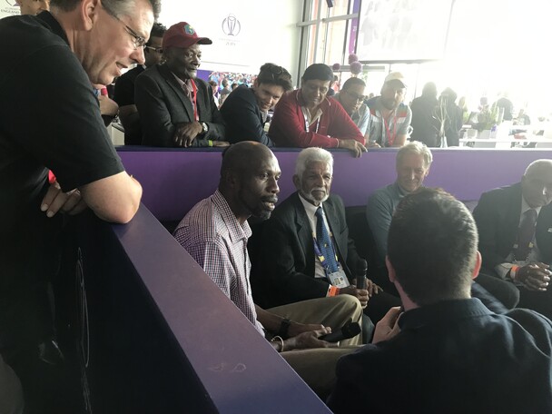 Jeremy Coney and some ex West Indies players being interviewed at half time.