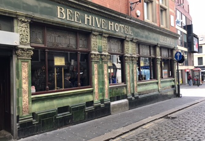 There are lots of pubs and cafe's. This is the Beehive hotel - it is the most expensive pub and at the same time the cheapest. Most expensive because of the cost of building it with it's tiles and frills on the outside of it. Cheapest because it has the cheapest beer - one pound 60p per pint.