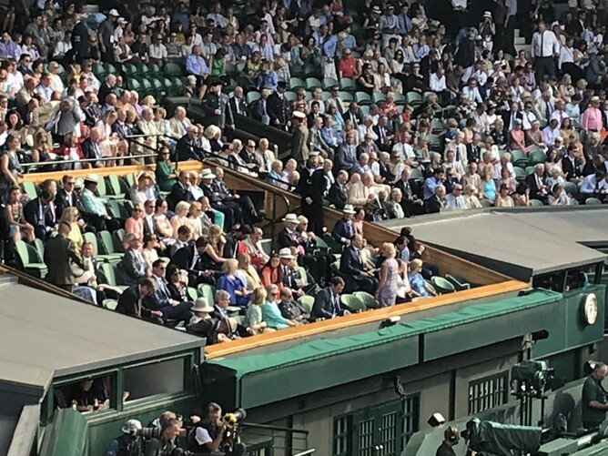Our view below. We watched Konta vs Kvitova, Federer vs Berrettini, and Nadal vs Sousa. Konta, Federer and Nadal were the winners. (You might have read that already.)