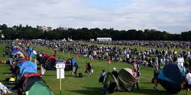 People camp overnight in this field to queue for Wimbledon. The queue was 3 km long.
