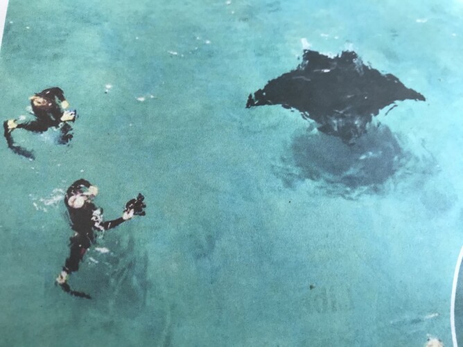 It was about a manta ray and and and one of the guides in this picture called Jake.