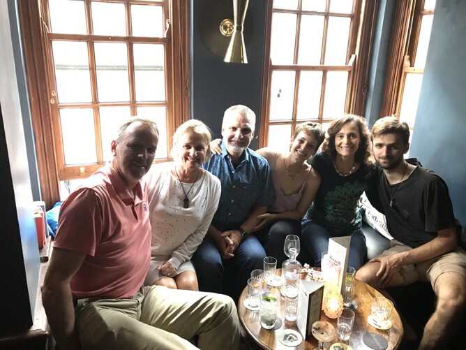 Sue and Paul have been particularly generous with the Kermodes over the years. Christmas Day in Capetown, always having us to stay or for lunch and dinner, Lachie looking after their apartment for a few weeks in London, and lots of other generous acts. Their children are two boys and a girl like us, and the uncanny thing is each was born only a few hours, days or months apart. Lachie took a picture of us all.