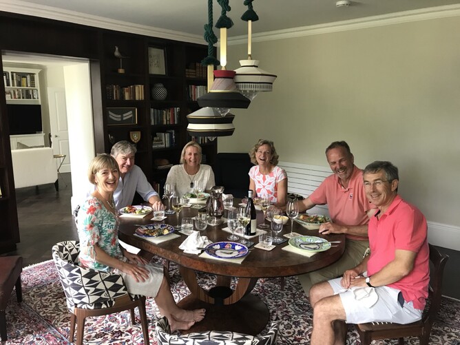 Fiona had a story to tell about their local village tennis champs (she was in the final of the club champs the next day). Simon always is quick to quip about anything. Sue is making the difference with families in the UK. Paul told a new story about missing the epic Borg / McEnroe final in 1980. His Oxford roommate asked him to join him in the scoring (in those days it was all done by hand like at the Masters golf, and the roommate was captain of the Oxford Uni Tennis Club which did the scoring!) Paul said no thanks as he had a cricket game to play. As he said that was a big mistake. It was a fantastic five setter, with Borg winning 8/6 in the fifth set. Paul could have seen the match for free, and told a different story!