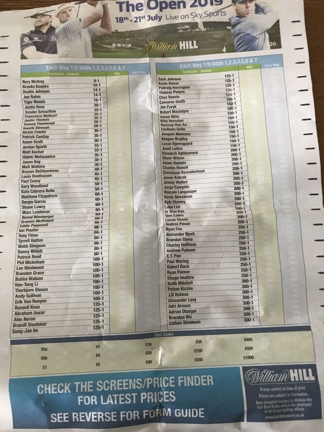 Here is the sheet from the TAB with the odds for each player - Shane Lowry 60-1.