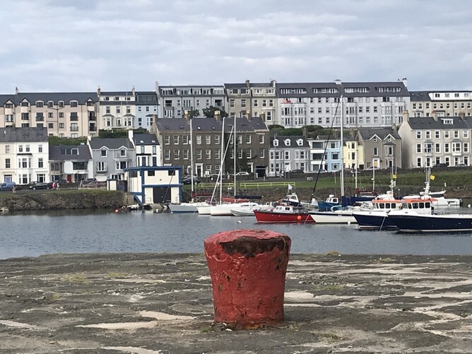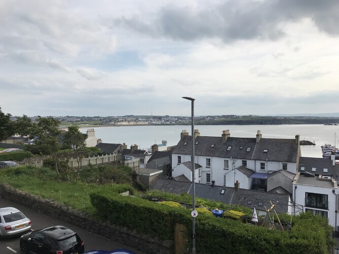 This is a view of Portrush from the Harbour Bar. Look for the grey house in the front row, behind the boathouse on the water. Our apartment is directly behind in a cream coloured house.