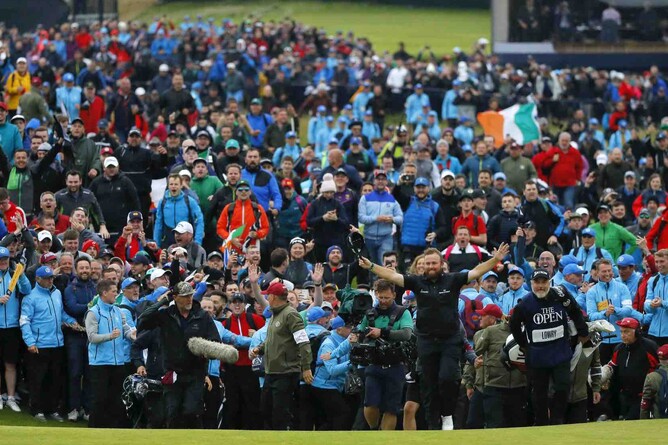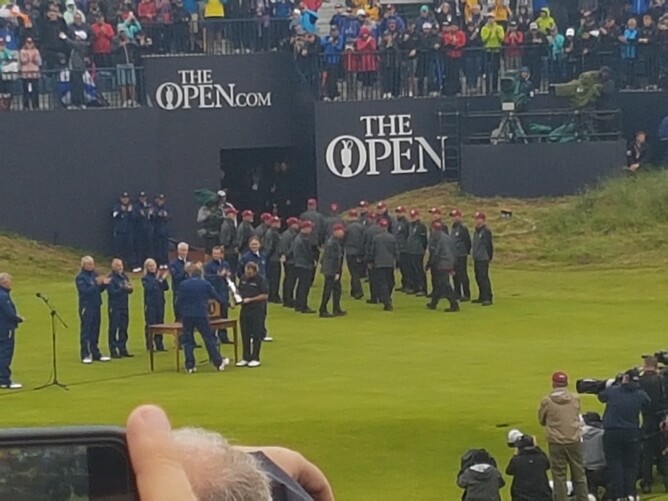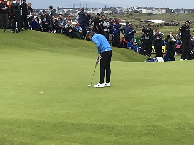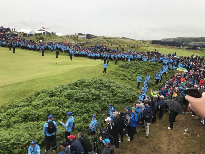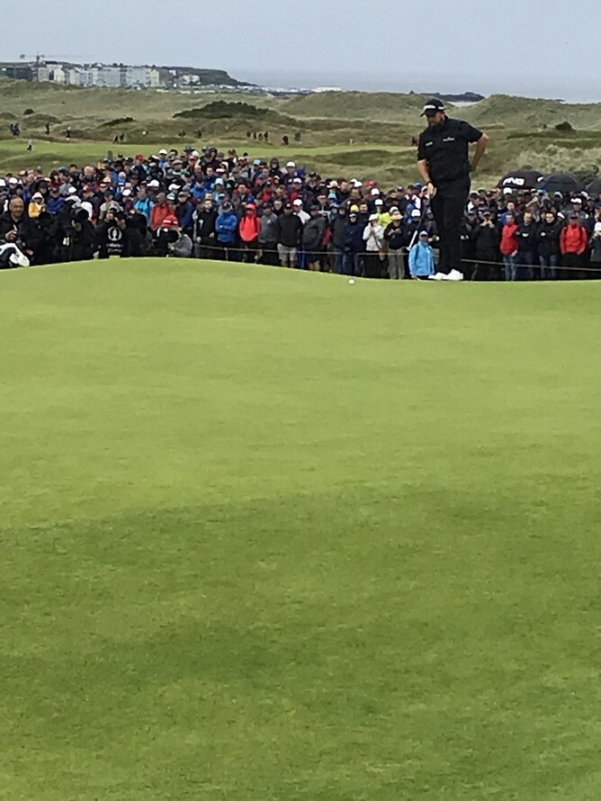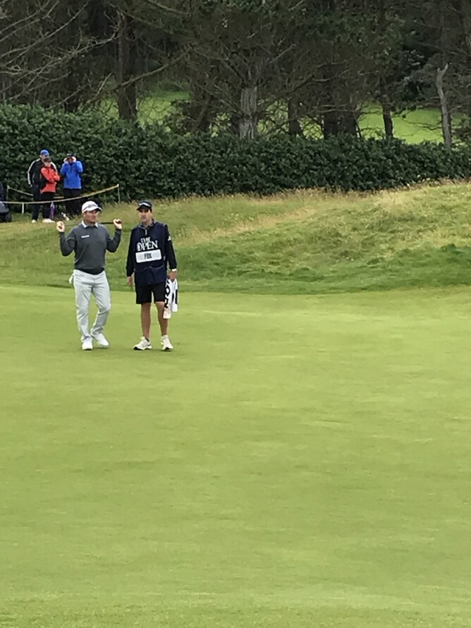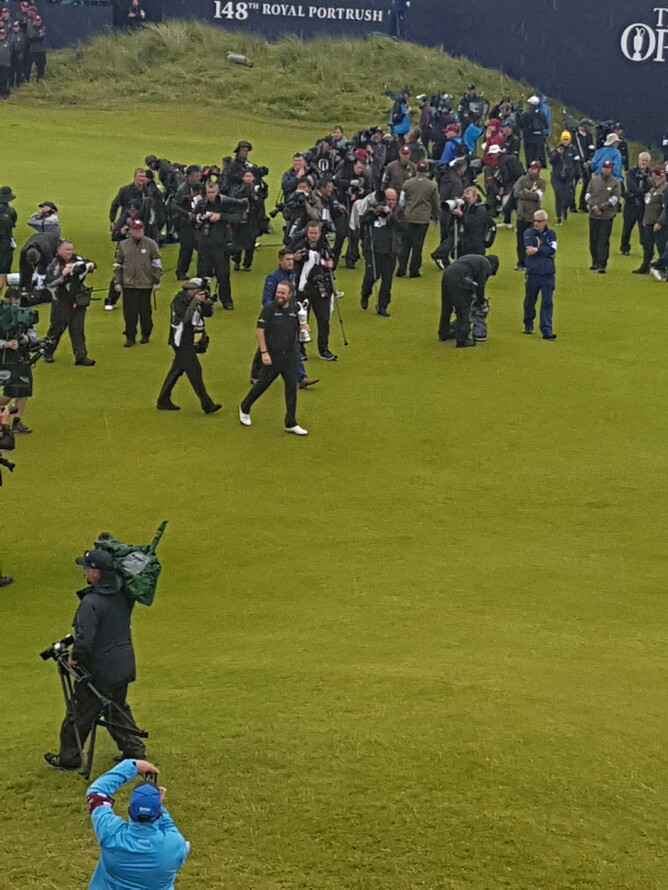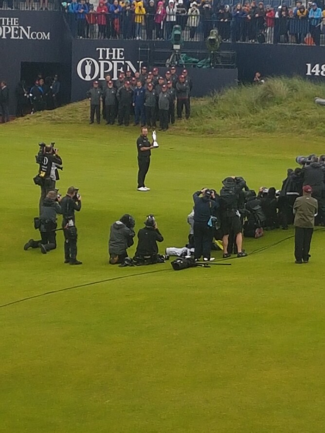 And then on the 18th, the winner is ... Shane Lowry. Lowry was a legend in winning - everyone loves the Irish down to earth, likeable boy winning. (Thank you to the person in the crowd who took this photo.)