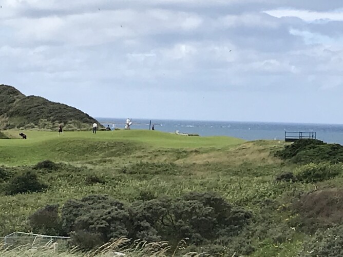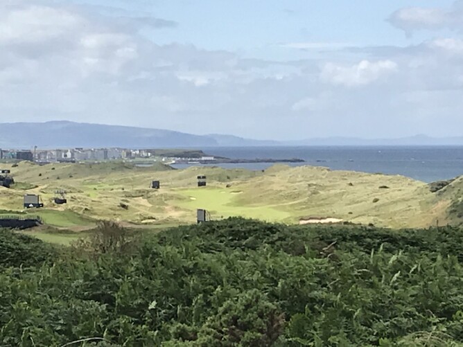 We saw Royal Portrush Golf Course from a different angle as we headed north for a look around. This is the 5th hole which is a par 4. We saw two golfers drive this green and get birdies. The green is to the right of the right-hand bunker in the distance, hidden behind the mound. There were 4 eagles scored on this hole over the weekend.