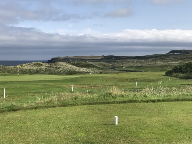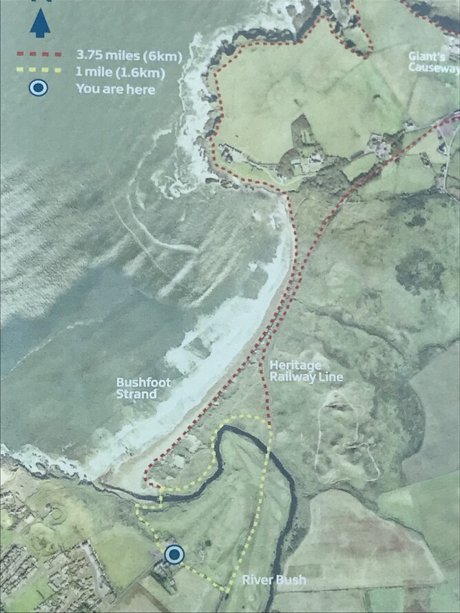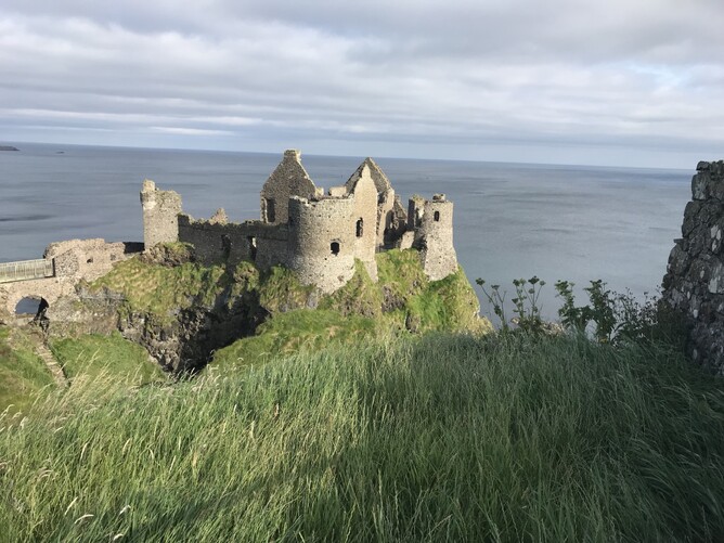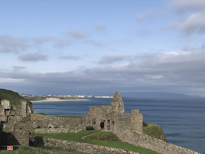 We head first to Dunluce Castle. It is 27 minutes cycling from Portrush - a straight foward cycle with a steady hill.