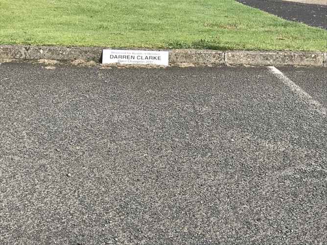 Darren Clarke, who we had watched at The Open (he won it in 2011), had his own special carpark.