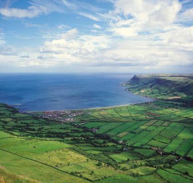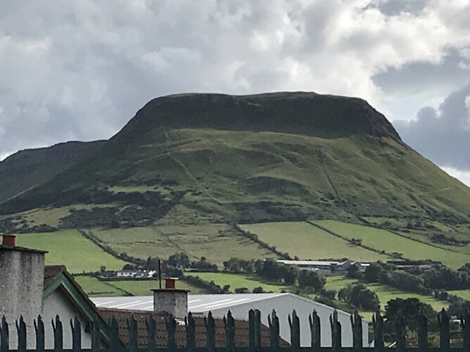 This is Lurigethan mountain (fort). Cushendall nestles beneath it.