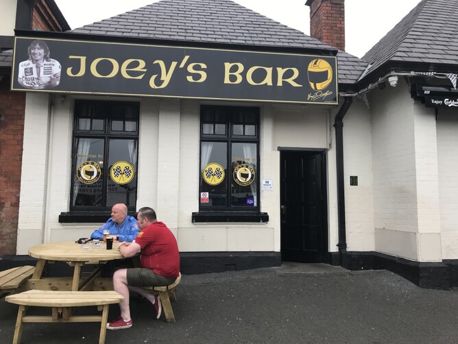 Back to the motorcycles - Michael Dunlop can't walk, but he can ride, and was cheered as he won the big race of the day. We watched one more race and then went to find Joey's Bar in Ballymoney.