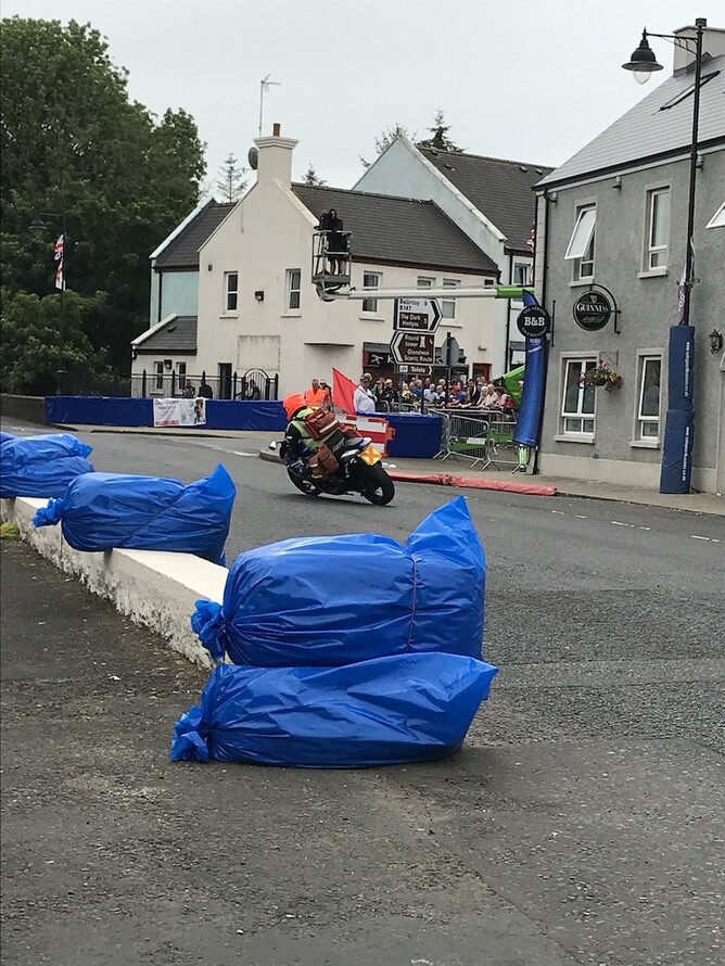 Then Bill had spotted the Armoy annual motorcycle road races in the local paper. He wanted to go. I agreed to give it a go. With all the roads closed all around, Bill navigated us to get to the town of Armoy.