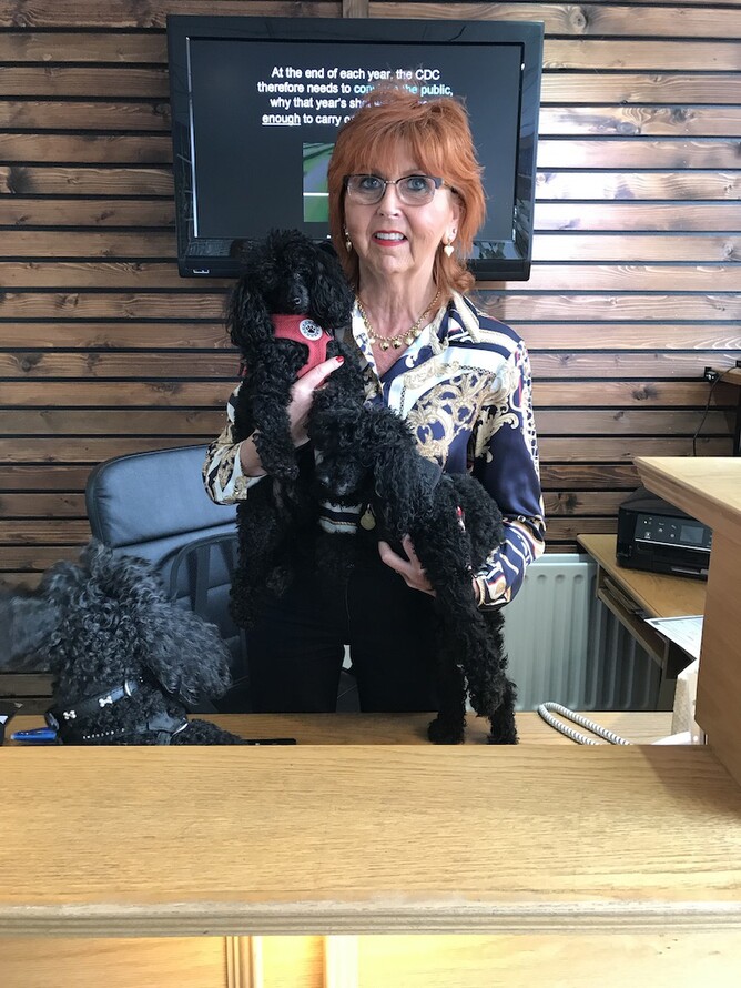 I had found Pringle Chiropractic to see, just up the road, so Bill stayed at the cafe and worked and I went for a treatment. Paul Pringle has been all over the world. He only uses a machine thingy. It seemed to do the trick. Here is his gorgeous wife Maxine and her four poodles (one must have gone under the table). The poodles come to the clinic every day. She walks them at lunchtime in the park behind the practice. The treatment cost 30 pounds which I thought was reasonable.
