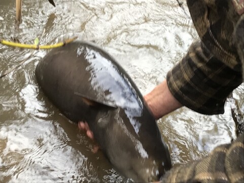 A famous eel at Waiheke. She was probably more than 100 years old - like a seal in width and 1.3m long. Robfrom the eco-village there loved her and would pick her up - lovely to watch. She has sadly left, in a flood and hopefully made it to the South Fiji Basin to breed. She was carrying at least 4 million eggs. She won't come back but maybe her young will.