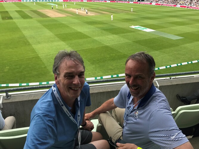 Bill found another long time Oxford friend (Sir) Peter Donnelly to go to the cricket with today.