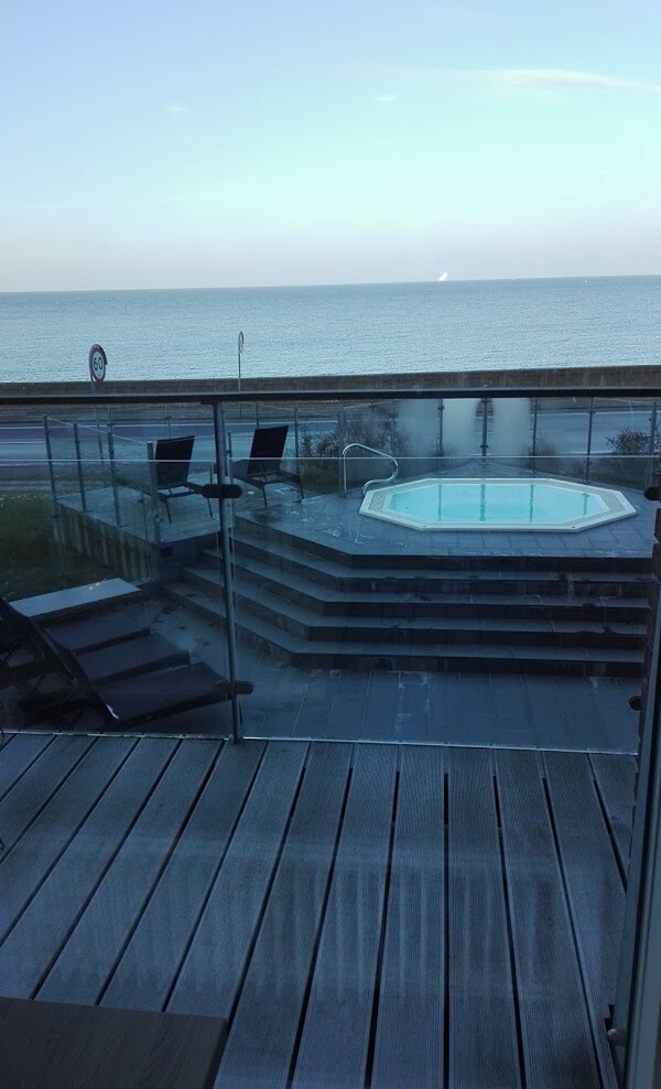 We took the bikes back and then enjoyed the spa facilities. This is the spa pool which looks out to the sea.