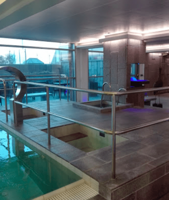 This was the edge of the warm pool with jets, and the ice plunge pools.
