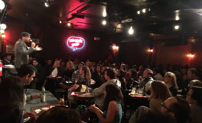 It reminded me of the woman in the park who kept on complaining to Chris, Bill and I for taking up her path! The Comic Strip was funny in parts and I would go to see again. My photo makes it look like there are only half a dozen people there, but there were about 40.
