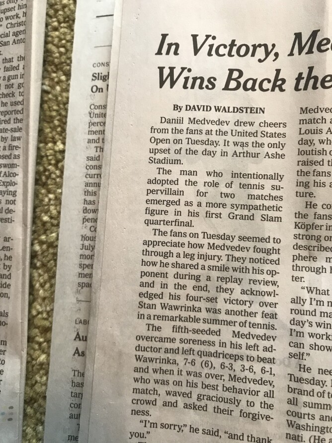 We read the paper in a cafe. Daniil Medvedev is the same age as our son Lachie. He looks so young.