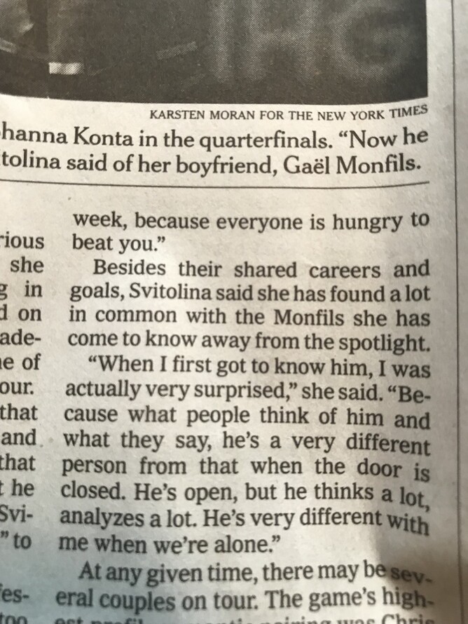 What it said about Elina Svitolina. We will be watching Gael Monfils today.