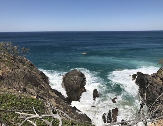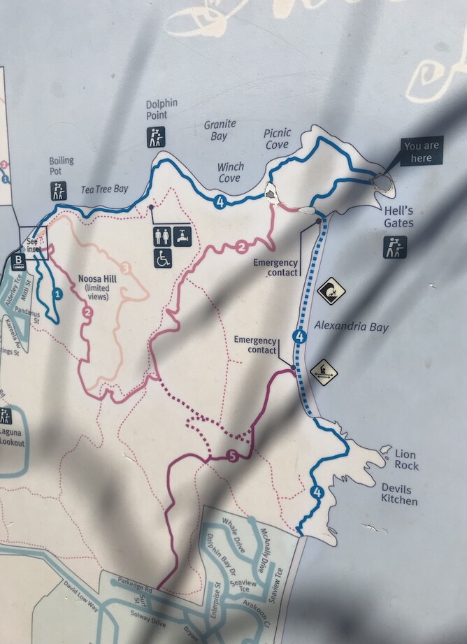 Mary and I choose to go from Noosa Beach to Sunshine Beach after yesterday's taster of Noosa National Park. I didn't bring walking shoes and have my white street shoes. Mary is training for a triathlon so we came to a compromise. We will run down the hills, and walk the rest. They are slight hills. Linda offered to look after Jeni. I go and get some early morning take away coffees from Grind Cafe.