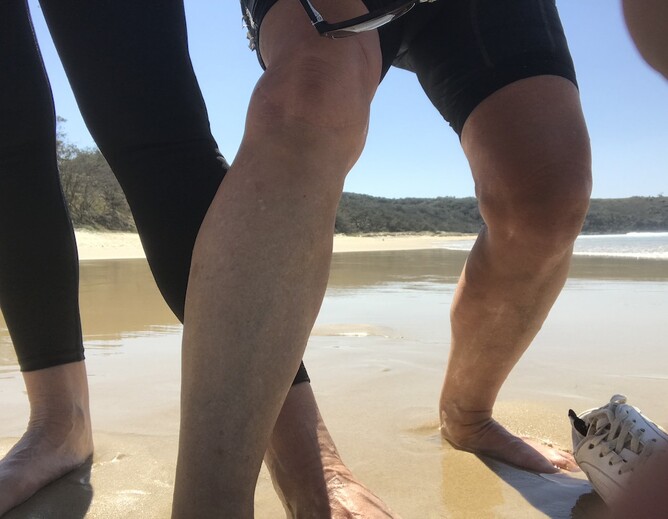 And then we do some earthing. Our shoes are off and we walk the beach barefoot.