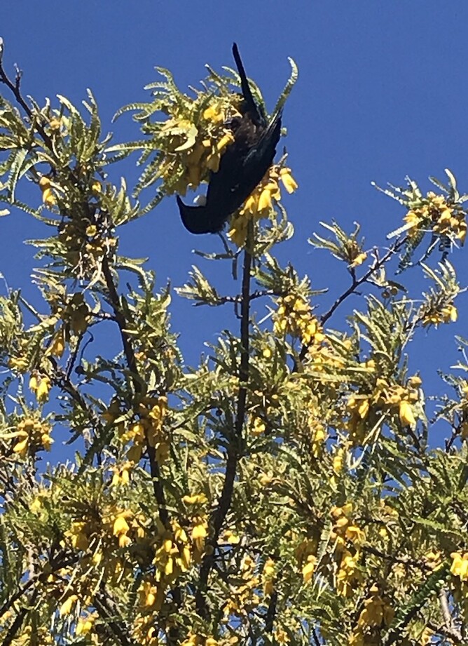 And I have missed the sound of the tuis while we have been away. They have five different songs. Here one is drinking and too busy to sing.