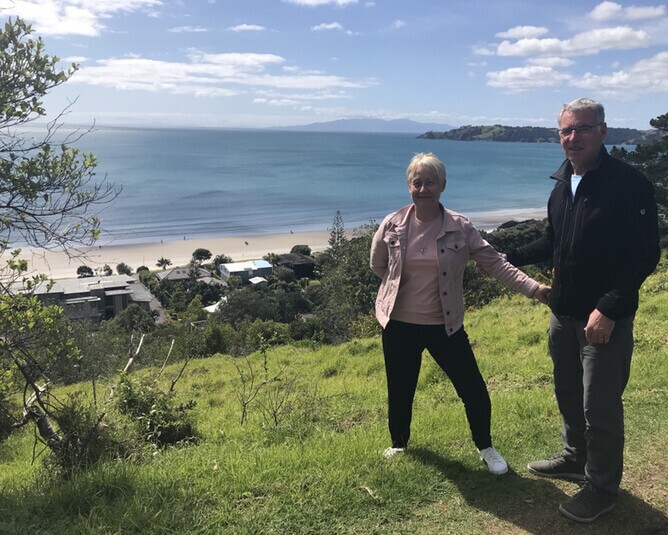 Before that I had picked up Roz and Max off the ferry, as you do in Waiheke. They are a lovely couple from Wanaka I met on the ferry. They were spending the day in Waiheke. I took a photo of them at the other end of Onetangi Beach. We came into the beach via the scenic route.
