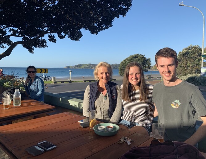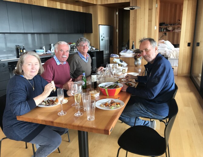More biking and more catching up. I must have had a 5 day break from the blog - I know I caught up with Leanne and Claire from the mind setters group, and also Debs, Margot and Chook. It was so great to see them all. I forgot to take photos. It is now lunch on the 27th August. A blast from the past come for lunch at Waiheke. This is Anna and Keith Sutton, and Hugh Caughley. (And Ed, Ed.)