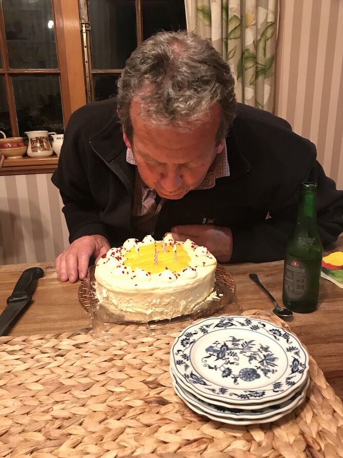 When we landed in Auckland we drove to Hamilton to visit Anna and Simon. We wanted to celebrate Simon's birthday, even though we were a few days late. And we did, with a beautifully cooked home made dinner - Make your own pita bread with salad and chicken (yum, like Hello Fresh, my favourite) and then a birthday cake (more yum) This is Simon lining up to blow the candles. These days we need to work up to the blowing breath obviously.