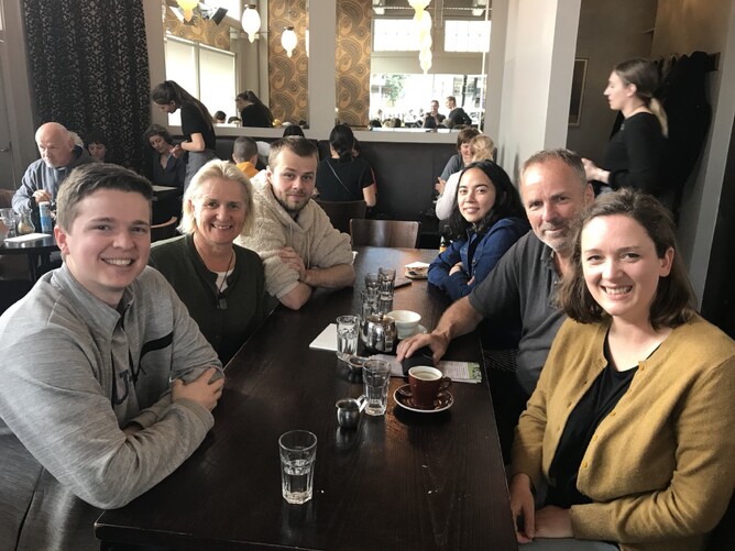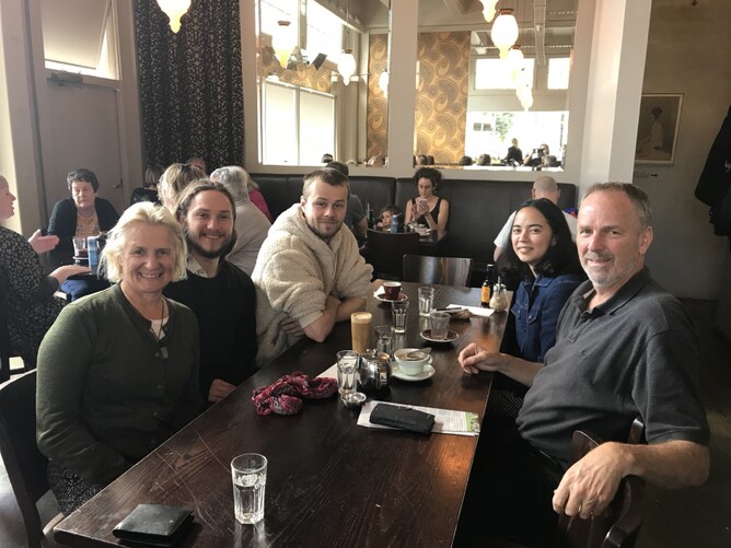Brunch the next day with Daniel, Mahkaila (Daniel's girlfriend), Mattias, Meg, and Jack.It was so lovely to catch up with them all. Mattias is in his final year of a conjoint degree - Software engineering and Economics. He also works a few jobs - one for a teacher resources company. Meg works for Maritime New Zealand writing policy. Daniel works as a computer scientist for JRNY. Mahkaila is doing a grad programme working for different government organisations as a graphic tech designer. Jack is working for NZ Foreign Affairs. Here are Mattias and Daniel.