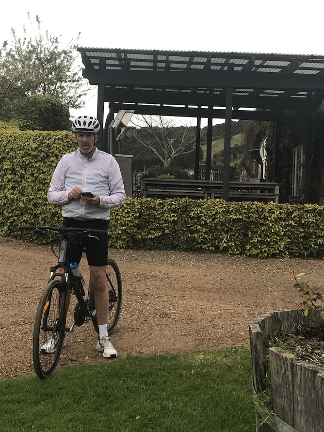 Then on the 9th it was out to Waiheke and a bike ride with Bill to Podieri Crisci. (He's never happy having his photo taken, Ed.)
