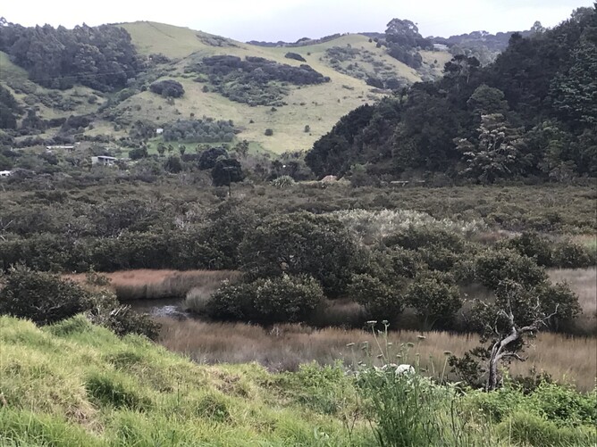 Podieri Crisci looks out on one of my favourite valleys (Awaararoa Valley) - favourite because Willie (a long fin female eel lived there for at least 20 years - that's how long Rob (a human guardian of hers for that time) lived there. She was maybe 100 years old, and has now disappeared - gone off to breed we hope, and now another old ell called Titowhai has taken ownership of the top pool. Note the planted wetlands.