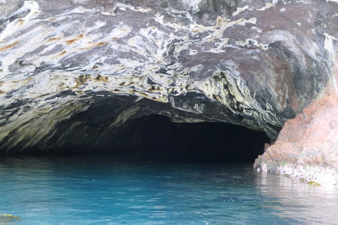 Then we go inside an open top cave and see this. We are with Daniel who loves geology and tells us about them. We all stay pretty silent and just admire the colours.
