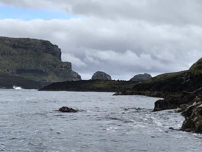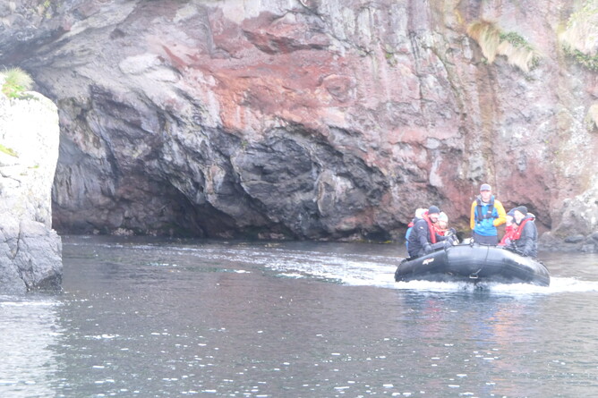 In the afternoon we do a zodiac cruise around Musgrave Inlet (refer back to map in Carnley Harbour.) It lies in the centre. The volcanic rocks rest on the basement of coarse-grained biotite granite up to 100 million years old, and this exposes at Granite Point. We cruise to get to the point.