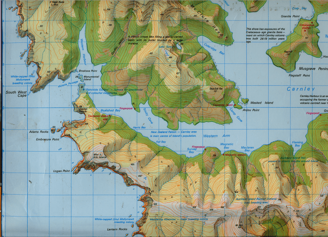 We have come from Enderby Island. We have travelled about 40 km down the east side of the island. Here is the map again.