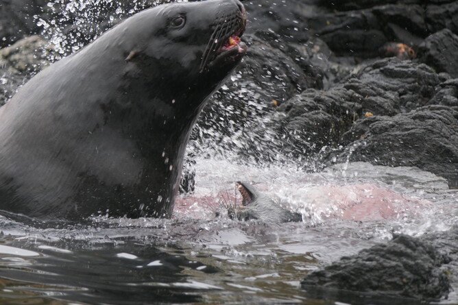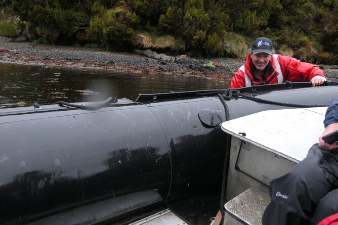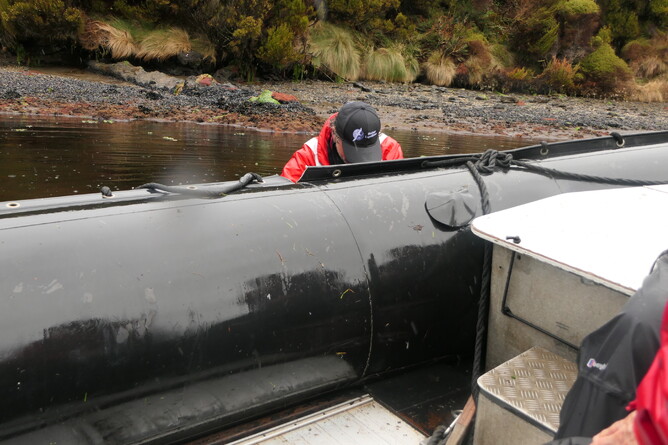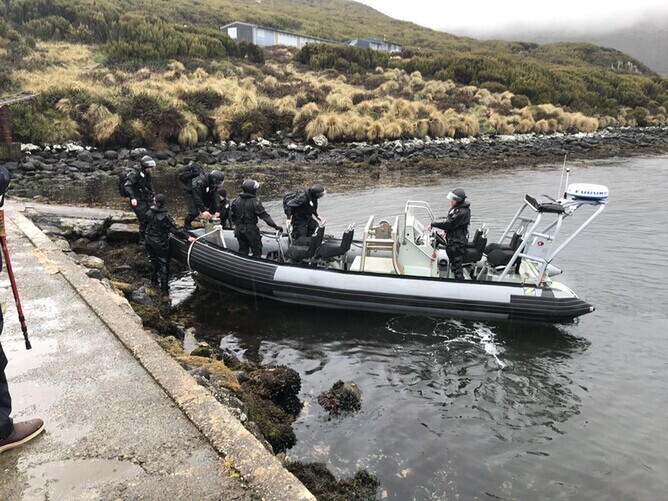 The Navy is doing some work in the bay for DOC. Judd said Heritage had specifically asked DOC to stay clear of this bay today, which they had agreed. Judd is not happy to see the ship in the bay, nor this zodiac when we are about to land.