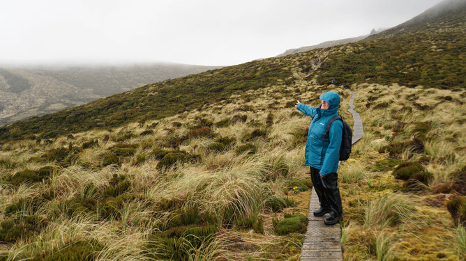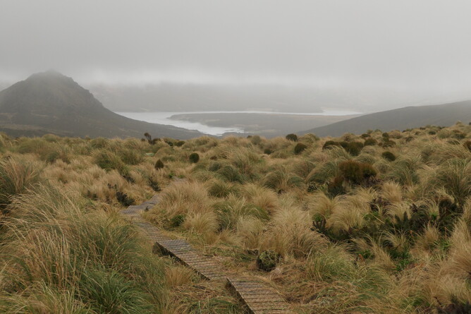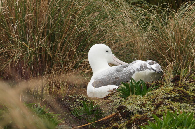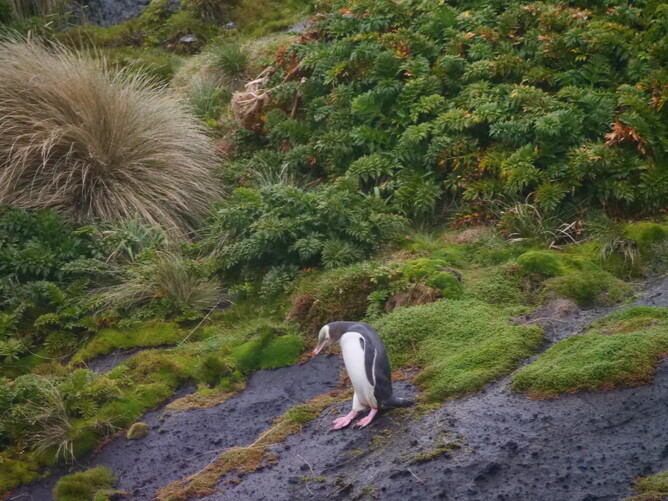 We head up the path to look for the rare Campbell Island snipe, and see albatross nesting.