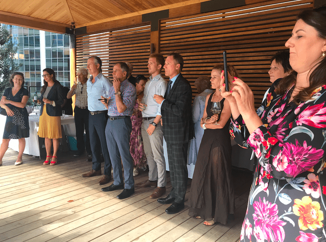 And here are some of the people that were on the rooftop farewell drinks. Ewen's wife, Penny, is in the middle. I videoed all of this and sent it to Penny, as they have two girls and I wanted their girls to hear the acknowledgement of their Dad. His work has been a big engine for NEXT.