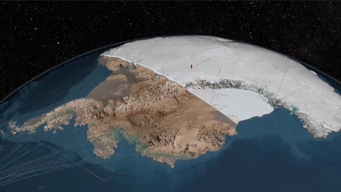 This is a picture of Antarctica from space. I like it because it is ice, snow, inhospitable and like no other place, and it is our earth's engine and it does have special wildlife. The piece jutting out on the left is the Antarctic Peninsula where we are. Coming from Ushuaia is the shortest journey from any continent we can take.