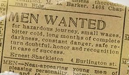 Below is the ad Shackleton placed in the London Times for crew, although there does seem to be dispute as to whether he did actually place the ad - one of the crew members never saw it. I thought it good to put in the blog anyway. As well as getting skill sets needed for the trip he had interviewed crew by asking them to write a poem or sing a song. He knew with so long away they needed to have something else to offer the group.