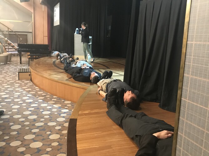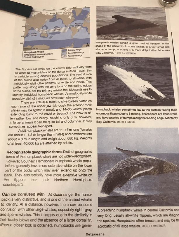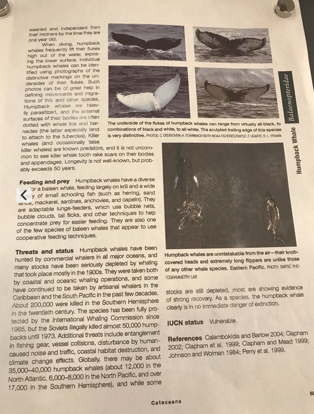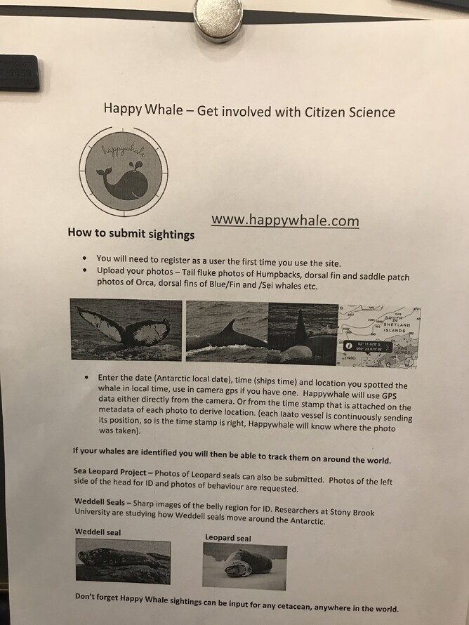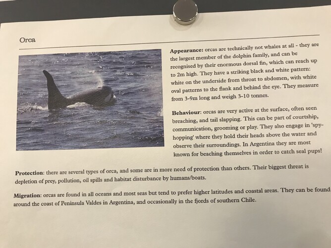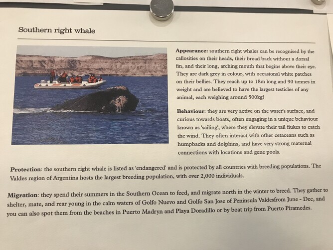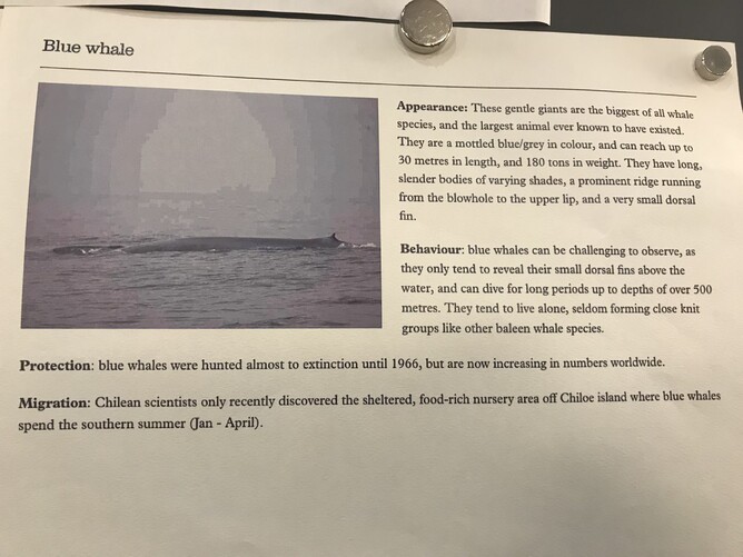 Then Kirsty talked about whales - first, the incredible size of a blue whale. She got her expedition leaders to lie down to show us - they are big! The equivalent of six elephants. They measure 5 meters across the tail.
