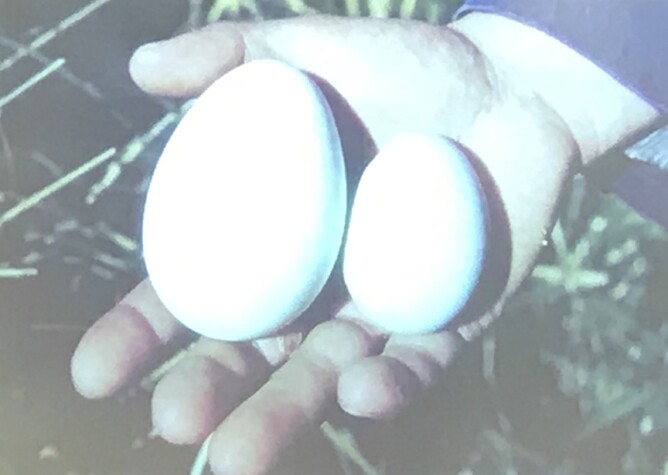 Eggs in crested penguins - starts off with two eggs, gives one away to the skua's or lets go of one (maybe the best looking/stronger one).